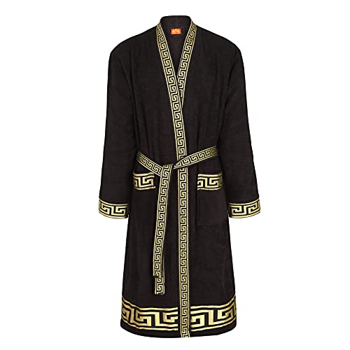 Belle Arti Badrock av frotté 100% bomull med 2 stora framfickor i exklusiv Mäanderdesign för kvinnor och män svart vitt guld, svart, L