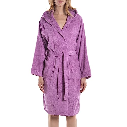YEAUPE PRO Badrock för kvinnor frotté med huva, bomull 100%, velour frotté, morgonrock, badrock för kvinnor, Lavendellila, M