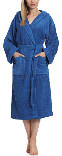Morgonstjärna badrock dam frotté 100 % bomull med huva lång OEKO-TEX, Jeansblå, L
