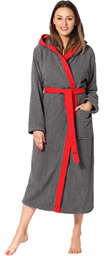 Morgonstjärna badrock dam frotté 100 % bomull med huva lång OEKO-TEX, antracit, L