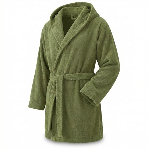 Pure Cotton - Sjalkrage badrock 100% ultra-absorberande bomull - dam/herr frotté badrock - standard 100 av Öko-Tex - tvättbar 40°C - S/M - trädgårdsgrön, Färg: grön, M-L