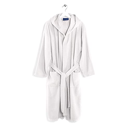Caleffi Unisex badrock för vuxna, kvinnor, män, huva, av mjuk frotté, hydrofil bomull, 450 g/m², tvättbar, maskintvätt 40 °C, torktumlare, storlek 1009873, vit, M/3XL, Vit