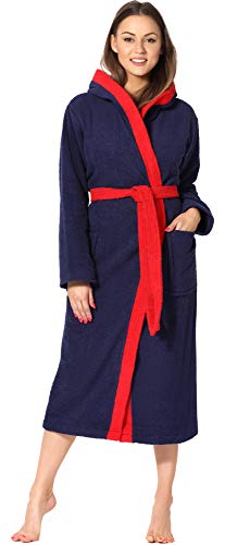 Morgonstjärna badrock dam frotté 100 % bomull med huva lång OEKO-TEX, Marinblå, XL