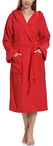 Mnemo Badrock dam lång med huva badrock dam frotté badrock dam fluffig, röd, XL