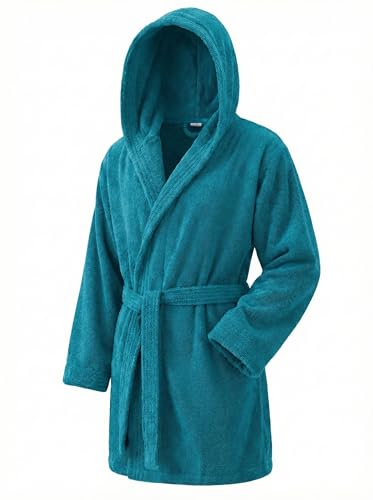 Caleffi - Minorca badrock för barn, unisex, med huva, tillverkad av 100% mjuk frotté, 400 g/m², maskintvättbar vid 40 °C + torktumlare, storlek 10–12 år, färgcykel