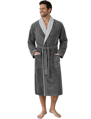Morgonstjärna badrock herr 100 % bomull frotté velour basturock sjalkrage lång för bastu spa reha pool wellness – OEKO-TEX Sam, Grå/ljusgrå, XL