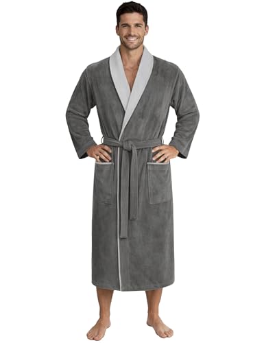 BERDITH Badrock dam fluffig lång, badrock herr fleece, badrock dam stora storlekar, unisex badrock set för par, morgonrock dam och herr med långt bälte, Grå (1 styck), L
