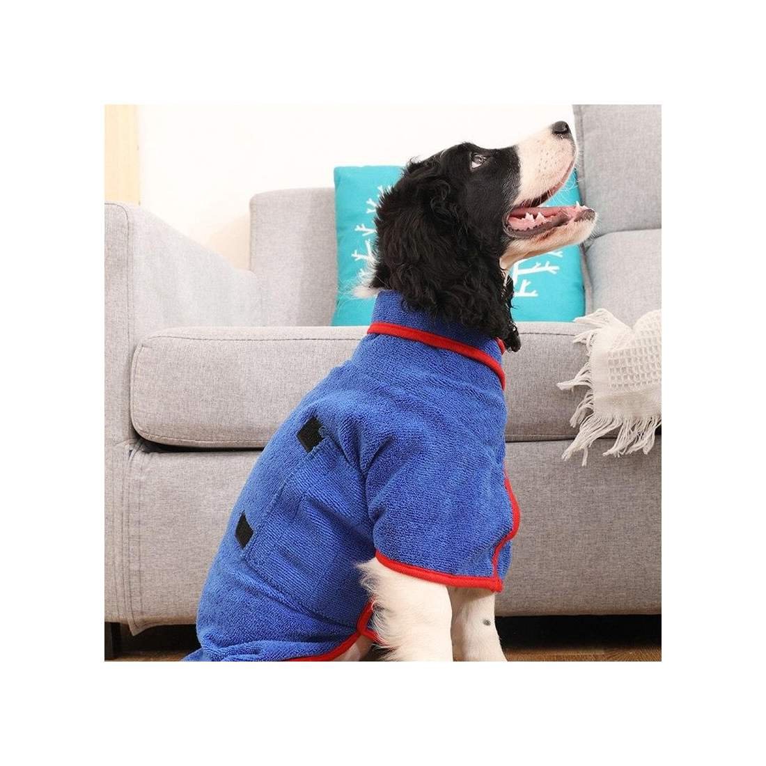 Lucky Paws® hundbadrock - Dubbellager & lyxigt mjuk hund badrock som torkar hunden utan krångel på några minuter, superabsorberande hundhandduk & badrock för hund i ett (XXL, Fransk marinblå)