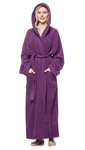 Badrock med huva för kvinnor, ankellängd, Färg: Plommon, Storlek kvinnor: XL long, Storlek unisex: XL-XXL long
