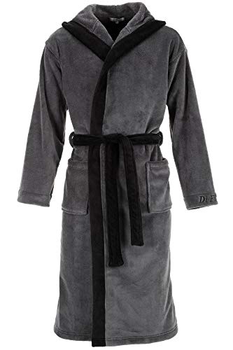Di Ficchiano Monza badrock för män med huva I fluffig morgonrock I nattkläder av ädel mikrofiber I kimono med färg- och storleksurval S – 5XL I badrock Öko-Tex Standard 100, grå svart, XL