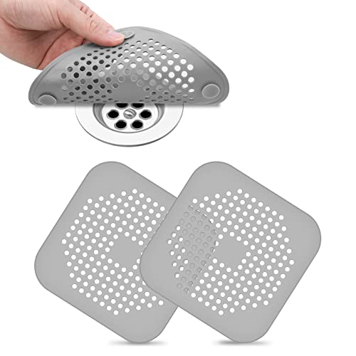 Flintronic 2 stycken avloppssil av silikon, diskbänkssil för dusch, diskho sil för avlopp diskbänk, avloppssil handfat för kök, badkar, badrum, duschgrå