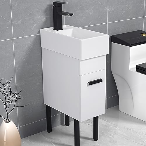 Badrumsskåp med handfat kombo väggmonterad skåpuppsättning modernt badrum skåp för litet utrymme – lätt att installera – kran – avlopp inkluderar (färg: Golv 60 x 25 cm/24 x 10 tum, storlek: Vit)