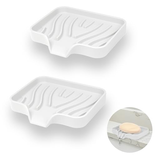 YoHyien 2 Stycken Silikon Tvålskålar med Avlopp, Självdränerande Tvål Dusch, Tvålhållarhandfat, Tvålkoppar för Badrum, Kök, Håller Tvålen Torr (Vit)