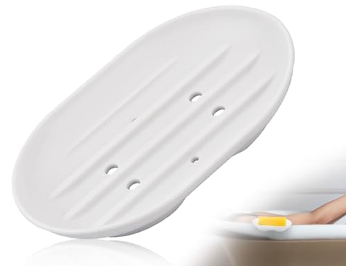 KAPSING Tvålkopp silikon, oval tvålskål silikon med avlopp, tvålkopp halkfri och robust, tvålskål för badrum, dusch, kök, mätare (vit)