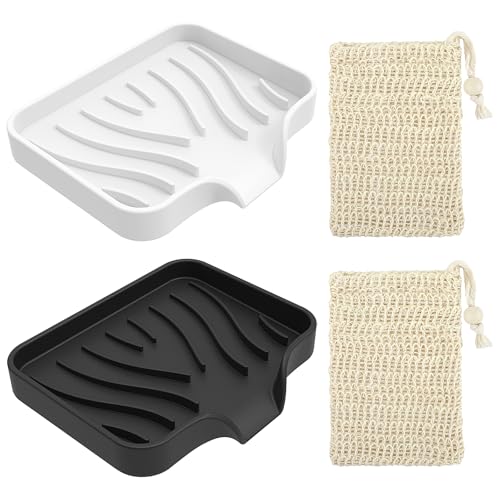 VINEST 2 stycken tvålkoppar silikon, tvålskålar med avlopp, halkfri silikon tvålkopp dusch, mångsidig tvålkopp med 2 tvålpåsar för toaletter badrum kök tvättställ