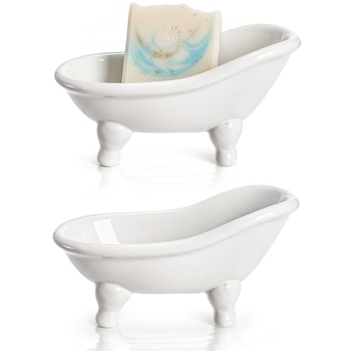DEAYOU 2-pack keramisk tvålkopp, mini badkar tvålhållare, liten vit tvålskål med avlopp, porslin söt bar tvålbricka för dusch, badrum, dekor, kök, bänk, miniplanterare, sminkbehållare