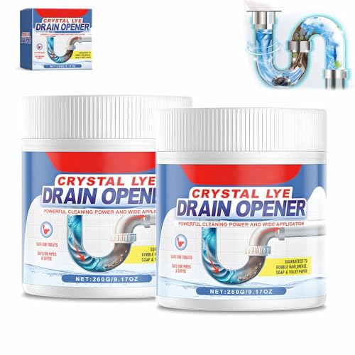 Kristalllut Avloppsöppnare,Multifunktionellt Kraftfullt Rörmuddringsmedel,260g Crystal Lut Avloppsöppnare Pulver,för Att Täppa Till Avlopp,Handfat i Badrum,Diskbänkar,Duschrör (2pc)
