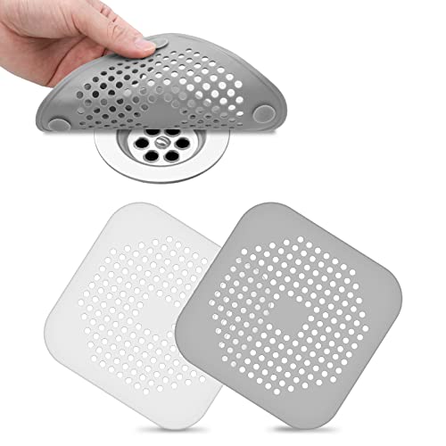 Diffaxy 2 stycken silikondräneringssikt, hårsil dusch med sugkopp badkar dräneringsskydd, duschsil avlopp hår för badrum, köksdiskbänk, handfat (vit + grå)