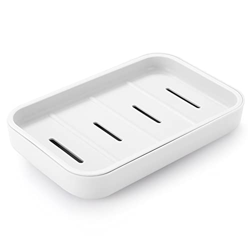 ERKXD badrum tvålkoppar tvålkopp tvålhållare med avlopp, tvåldispenser för dusch, enkel rengöring, torr, stoppa lerig tvål (vit)