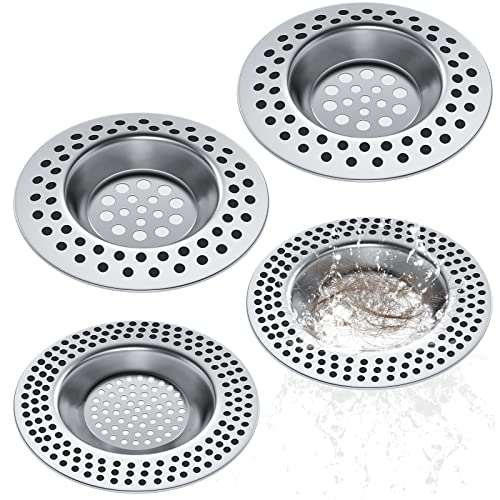 Realure 4-Pack Avloppssil För Diskho Med Duschavlopp Hårfångare, Avloppssil För Dusch, 90 Hål Handfatssil För Kök, Badrum, Toalett Skydd Av Avlopp, Rostfritt Stål Metall 2 Storlekar