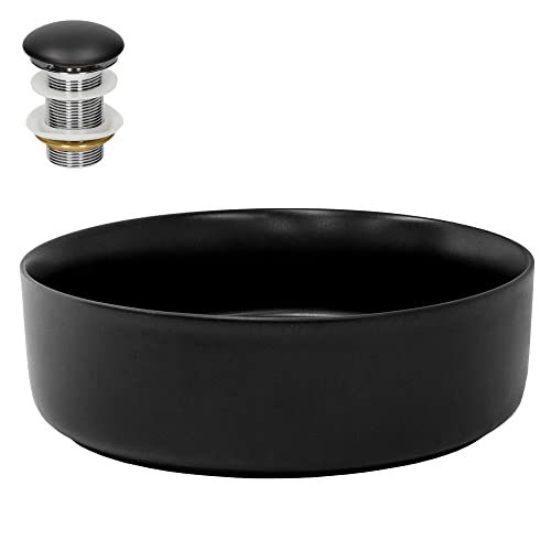 ML-Design Keramiskt handfat i svart matt Ø 360 x 120 mm med avlopp, runt påbyggnadshandfat, modernt handfat handfat handfat plats handfat, för badrum/gästtoalett