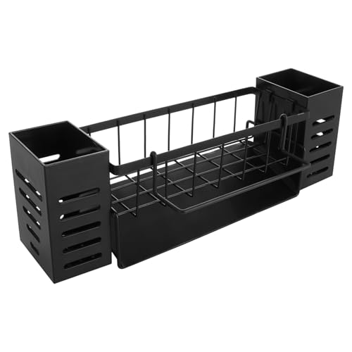 VILCEN Diskbänksorganisatör, diskbänk kök arrangör rostfritt stål med självdränerande avlopp för svamphållare, diskbänkhållare, arrangör för kök och badrum, svart