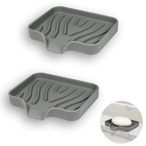 YoHyien 2 Stycken Silikon Tvålskålar med Avlopp, Självdränerande Tvål Dusch, Tvålhållarhandfat, Tvålkoppar för Badrum, Kök, Håller Tvålen Torr (Grå)