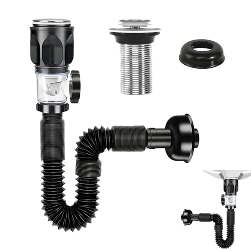 Tvättställ avloppssats luktsäker sifon tvättställ kit avloppsrör kit för handfat avlopp med infällbart flexibelt avloppsrör och popup dräneringsplugg för badrum kök