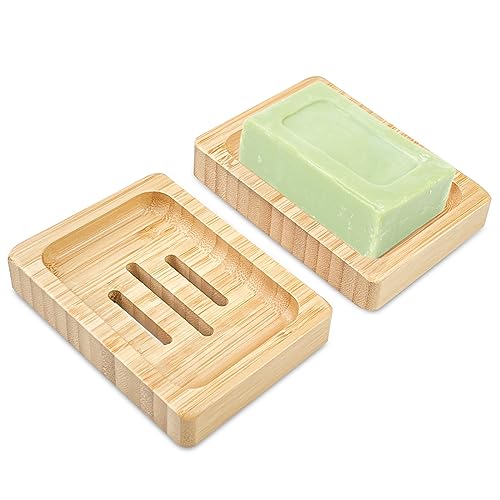 Magrimaxio 2 stycken tvålskålar med avlopp, tvålhållare trä dusch, tvålkopp naturlig trä bambu, tvålskålar halkfri desig, tvållåda för badrum kök och toalett tillbehör förvaring