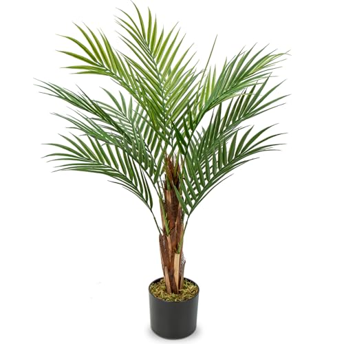 90 cm konstgjord växt Areka palm konstgjord växt palm stor i kruka, konstgjort träd med 12 stammar för inomhus- och utomhusbruk, modern dekoration, dekoration badrum vardagsrum sovrum balkong