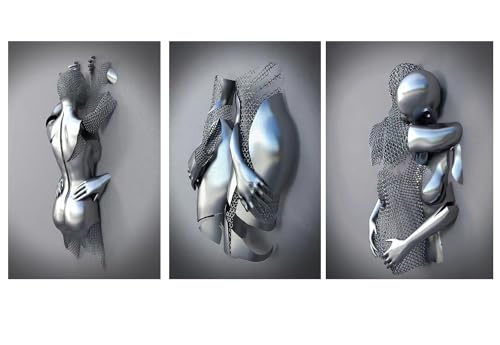 ZMURED 3D väggkonst dekor konstverk figur staty modern konst canvasmålning, stor väggkonst för badrum sovrum dekoration (3 st kramkyssar)