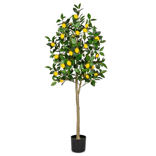150 cm konstgjorda växter stor citronträd, konstgjord växt, citronträd, stor i kruka, konstgjort träd för inomhus och utomhus, modern dekoration, dekoration badrum, vardagsrum, sovrum, balkong
