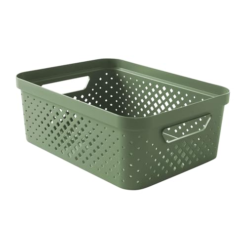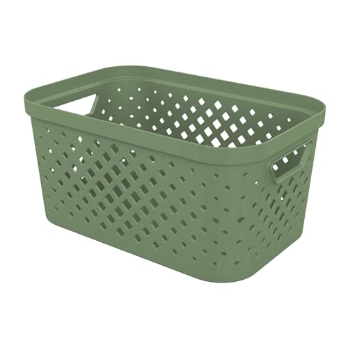 SUNDIS Pixel, 4,5 l förvaringskorg, tillverkad av återvunnen salviagrön plast, stapelbar, perfekt för badrum, sovrum, dekoration eller kontor