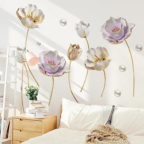 Runtoo Väggklistermärken lotusblommor 3D blommig väggdekal gulddekoration klistermärken vardagsrum badrum barnrum baby dekoration