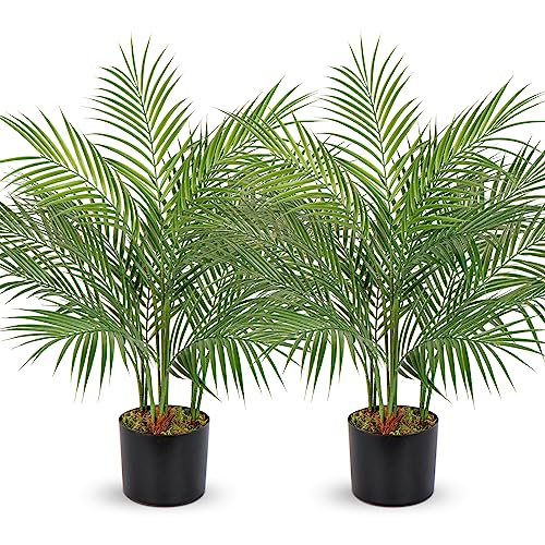 Uppsättning om 2 90 cm konstgjord växt Areka palm konstgjord växt palm stor i kruka, konstgjort träd för inomhus och utomhus, modern dekoration, dekoration badrum vardagsrum sovrum balkong