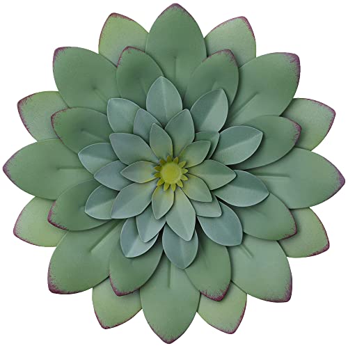 Everydecor Väggdekoration i metall med suckulentmotiv, grön, handmålad, tredimensionell blomkonst för vardagsrum, sovrum, kök och badrum, blommig dekoration för inomhus- och utomhusbruk
