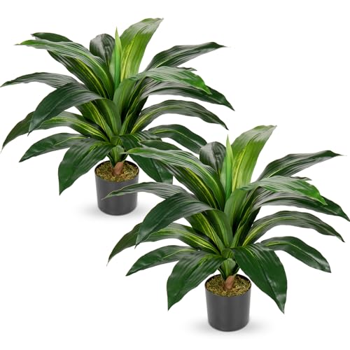Uppsättning av 2 konstgjorda växter stor drake träd konstgjord växt drakträd stor i kruka konstgjord träd för inomhus och utomhus, modern dekoration, dekoration badrum vardagsrum sovrum balkong