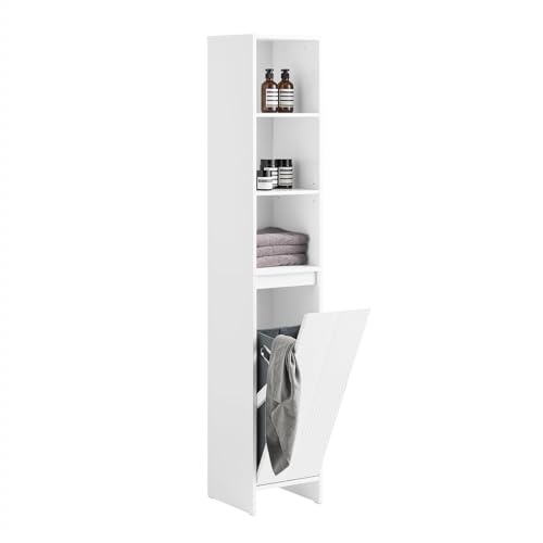 SoBuy Högskåp badrum, hörnhylla med 1 lådor och 2 dörrar, FRG236-W