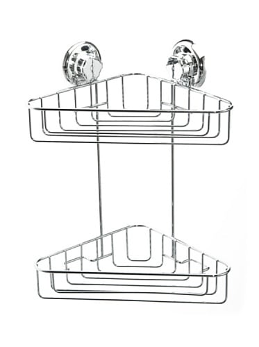Komaktor sug badrum dubbel hylla hörnförvaringshylla, metall, silver, 22 x 23,5 x 36 cm