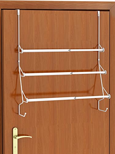 3 stänger handdukshållare över dörren – justerbar handdukshållare utan borrning för badrum – badrum dörrgarderob hängande hylla med 2 krokar – hängande handduksstång av metall – vit