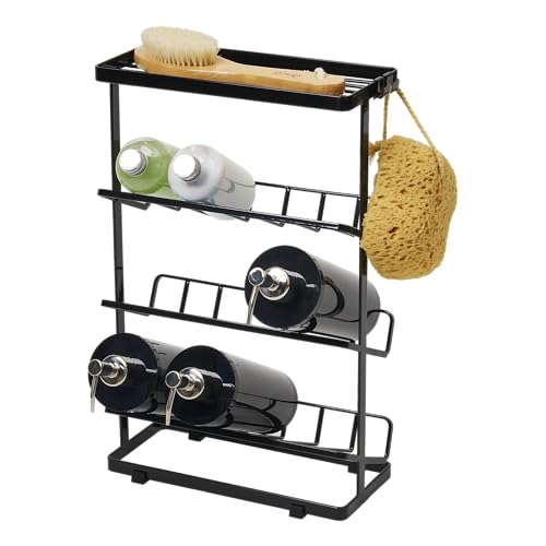 YAMAZAKI badställ för hemmet – förvaringsställ för badrum, caddie hylla organisatör – medium, 43 cm – stål – rymmer upp till 9 dispensrar