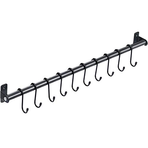 KINGRACK Köksskena grythängare, redskap hängande stång hylla, badrum handduksstång, väggmonterad hängare, organisatör för hängande knivar, kruka och stekpanna, väskor på vardagsrum med 10 avtagbara S-krokar, 570 mm x 1