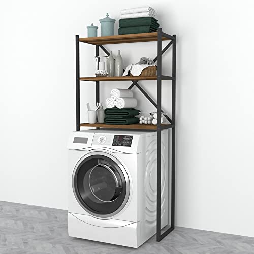 [en.casa] Tvättmaskinshylla Askersund badrumshylla med två öppna förvaringsfack stående hylla för badrum badrumshylla överbyggnad hylla valnötsutseende
