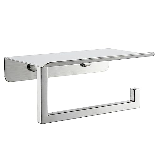 JQK Toalettpappershållare hylla, badrum näsdukshållare med telefonhylla, 13 cm 304 rostfritt stål näsdukspapper dispenser, borstad färdig väggmontering, TPH202-BN-T