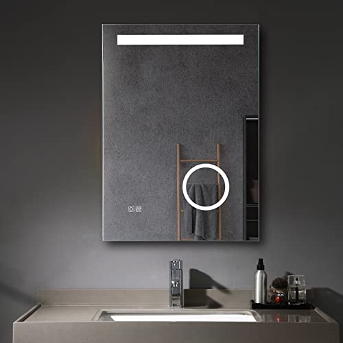 MEESALISA LED-badrumsspegel, 80 x 60 cm, med belysning, väggspegel för badrum, imfri ljusspegel med uttag, klocka, touch, dimbar