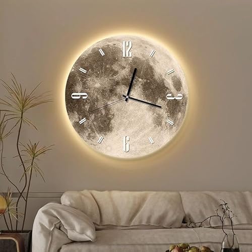 AAVEDA måne väggklocka, tyst lysande väggklocka 30 cm LED nattlampa klocka, inget tickande runt månmönster, vardagsrum dekor för badrum, sovrum, kök, kontor