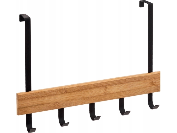 Relaxdays Vägghanddukshållare med hylla, 6 krokar, badrum och hall, smal, bambu, HBT: 18 x 75 x 16 cm, vägggarderob, natur, 1 styck
