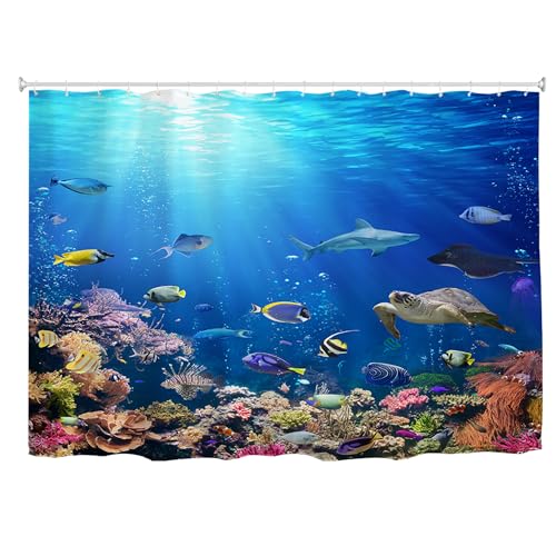 goodbath Extra brett duschdraperi, havsundervattensvärld tropisk fisk anti-mögel tyg vattentäta badgardiner för badrum med 12 krokar, ljusblå, 240 x 180 cm