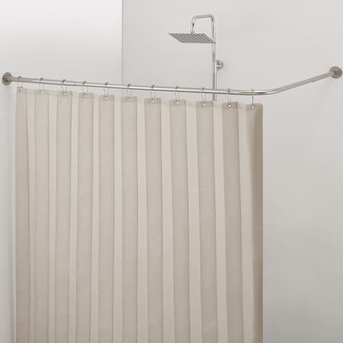 Crkmire Hörn duschdraperiskena, [61-134 cm] x [61-134 cm] Justerbar L-formad duschstång 90 graders böjd fyrkantig gardinstång för badrum med 12 krokar och takstöd