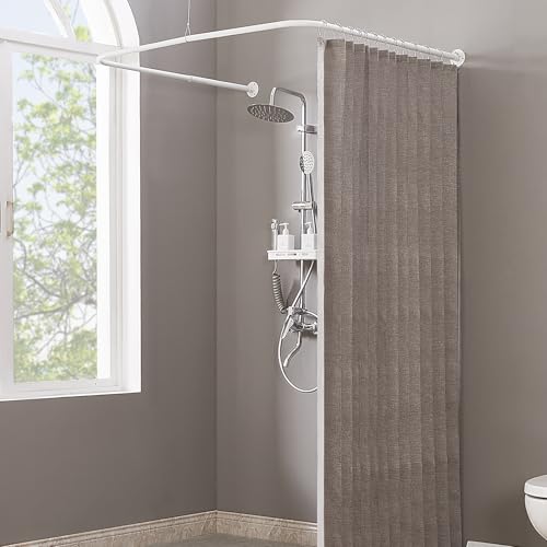 Crkmire L-form duschdraperistång, [61–94 cm] x [61–94 cm] justerbart hörn, duschstång, inget hängande 90 graders böjd gardinstång för badrum, med 12 krokar och
